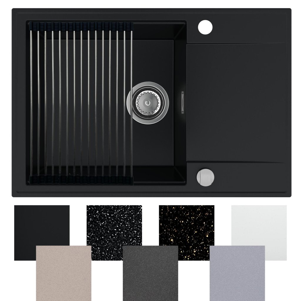 - Nano-granitový drez s 2 továrensky vyvŕtanými otvormi (otvor pre batériu a dávkovač saponátu)