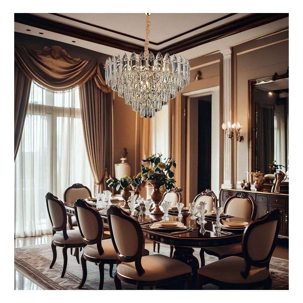 Toolight, krištáľové závesné svietidlo 50cm, 7xE14, G057-CP, zlatá, OSW-08991