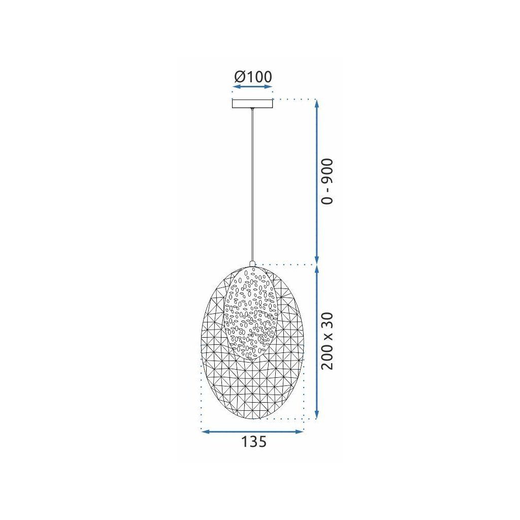 Elegantná závesná LED lampa so zlatou povrchovou úpravou a pôsobivou krištáľovou štruktúrou je vynikajúcou voľbou pre ľudí, ktorí hľadajú jedinečné osvetlenie s nádychom sofistikovanosti. Dizajnové oválne tienidlo púta pozornosť svojou jemnou štruktúrou, ktorá účinne rozptyľuje svetlo a vytvára útulnú a zároveň elegantnú atmosféru.