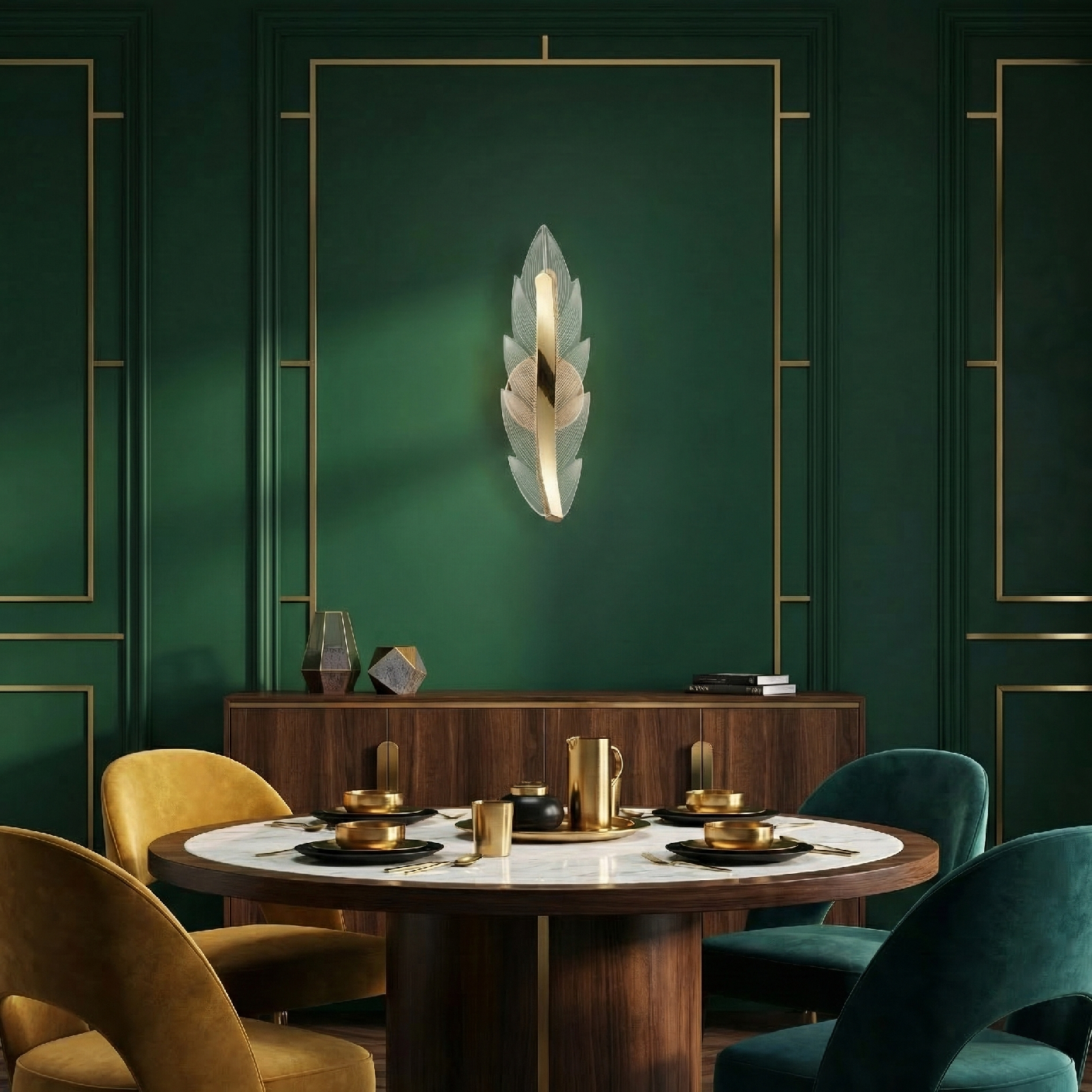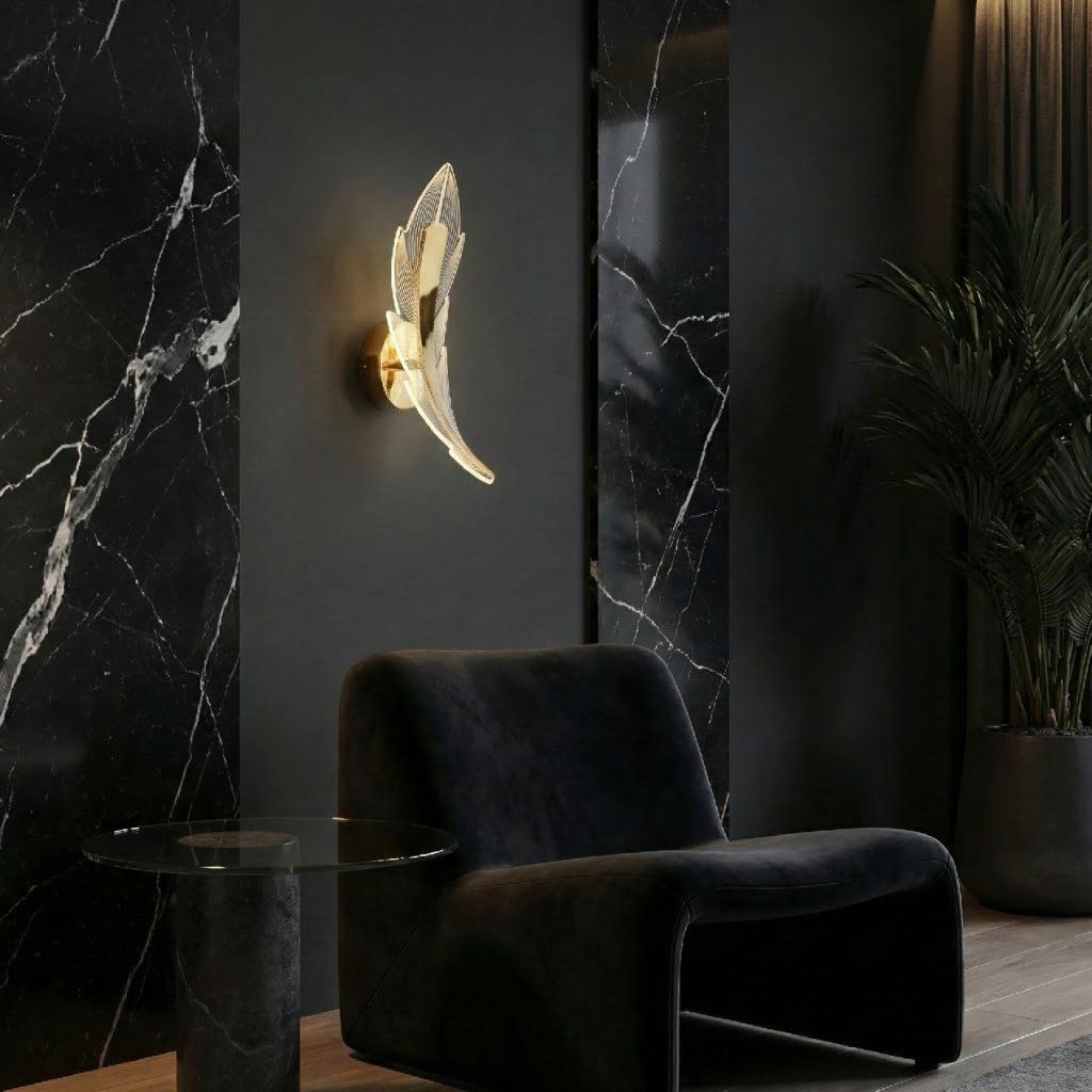 Motív pierka Dekoratívny tvar Elegantné svietidloZlatý kov a priehľadný difúzor
