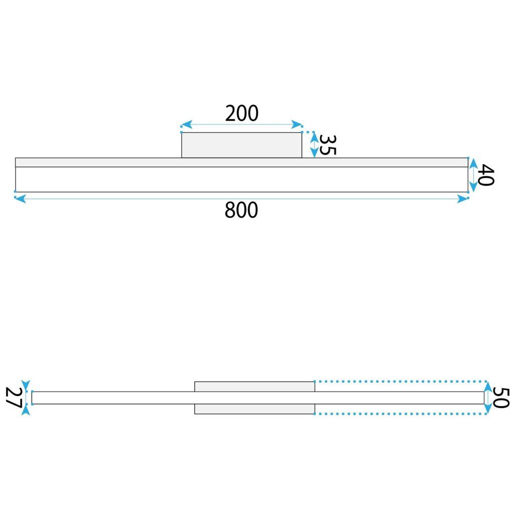 Nástenná lampa od Toolight je minimalistické svietidlo v podobe štíhlej horizontálnej tyče dĺžky 800 mm s výškou len 50 mm. Táto lineárna forma je jednou z najobjektívnejších v interiérovom dizajne — nepridáva priestoru zbytočnú geometrickú komplexnosť, ale presne ohraničuje a definuje povrch, na ktorý je namontovaná.
