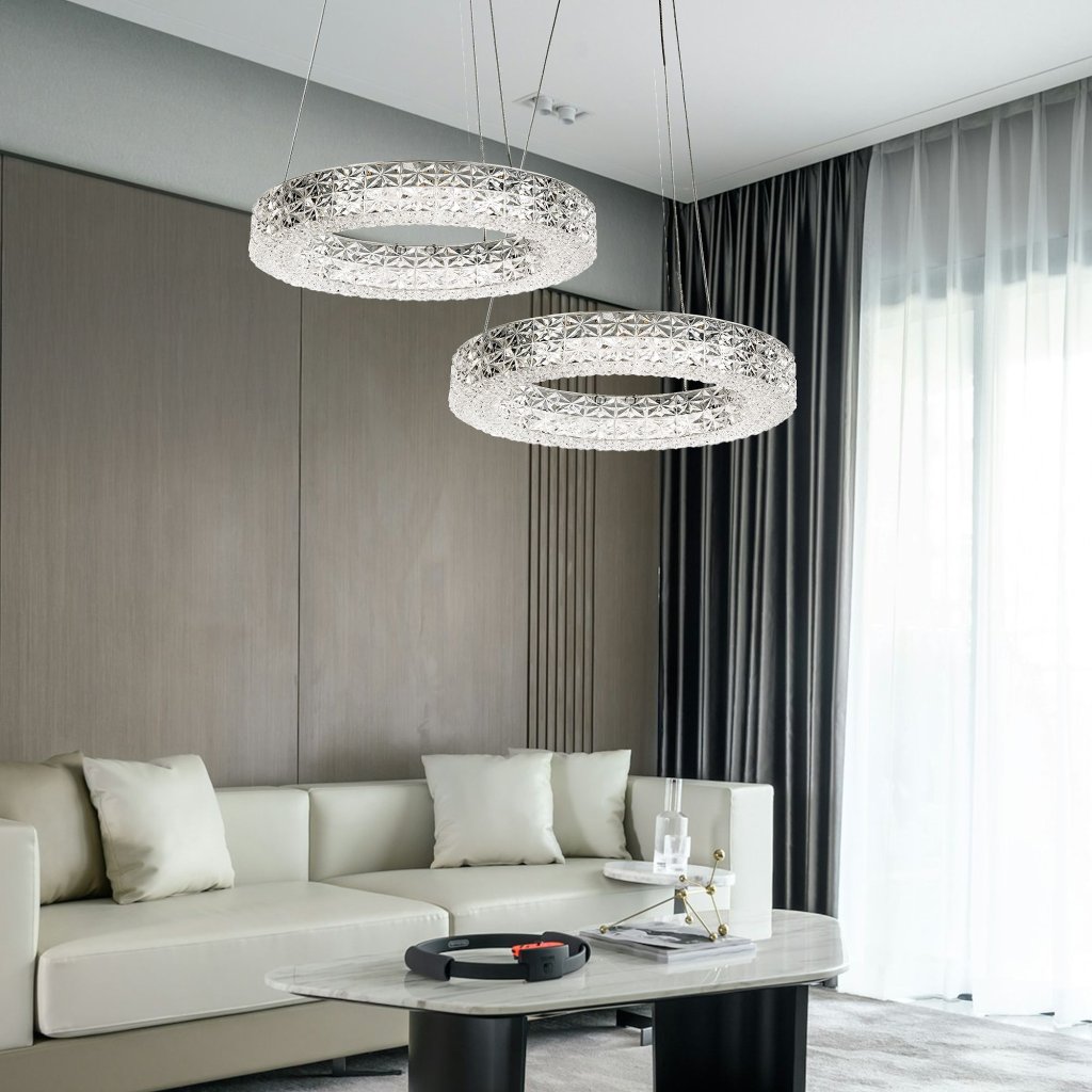 Svietidlo sa skvele hodí ako hlavný svetelný bod v obývacej izbe, jedálni, hale alebo v elegantnom komerčnom priestore. Vďaka zabudovanému LED osvetleniu poskytuje energetickú účinnosť a dlhú životnosť, čím eliminuje potrebu výmeny žiaroviek. Nastaviteľná dĺžka zavesenia umožňuje prispôsobiť žiarovku výške interiéru, čím sa vytvorí veľkolepý svetelný a vizuálny efekt. Ideálne pre milovníkov moderného štýlu s nádychom pôvabu.