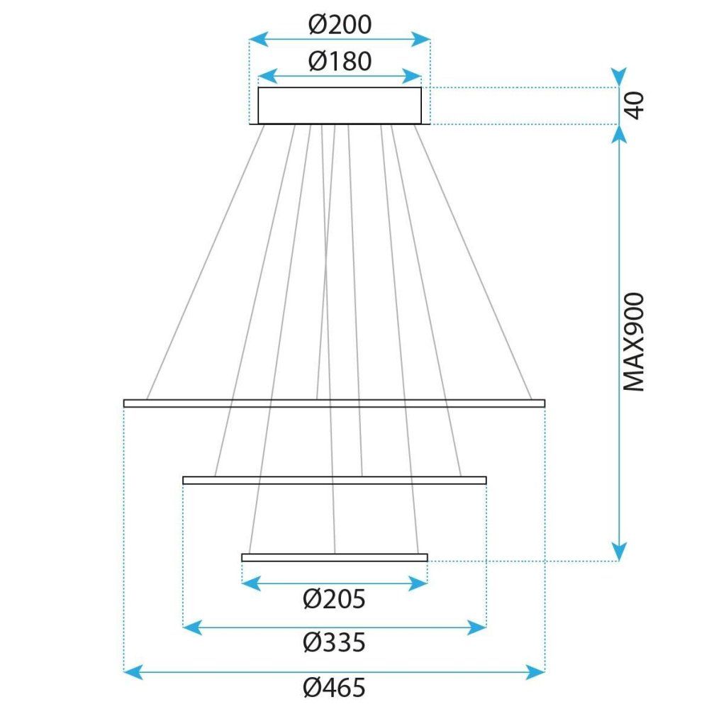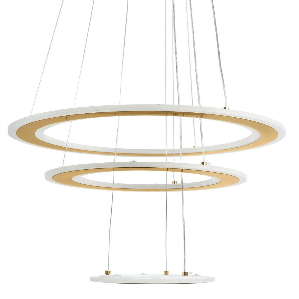 - LED závesné svietidlo s jedinečným, moderným dizajnom je vynikajúcou voľbou pre milovníkov elegantných a minimalistických riešení. Okrúhly tvar troch krúžkov umiestnených na nastaviteľných držiakoch vám dáva slobodu pri usporiadaní prvkov. Zlatá povrchová úprava robí z lampy ústredný bod každého priestoru.