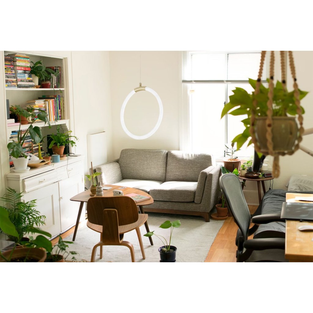 ✴️jemného kruhu z mliečne bieleho plastu, ktorý rovnomerne rozptyľuje svetlo vyžarované integrovaným LED zdrojom. Matné zlato v kombinácii s bielou vytvára účinný, no nenápadný dekoratívny akcent, ktorý dokonale zapadá do moderných, loftových a minimalistických aranžmánov.