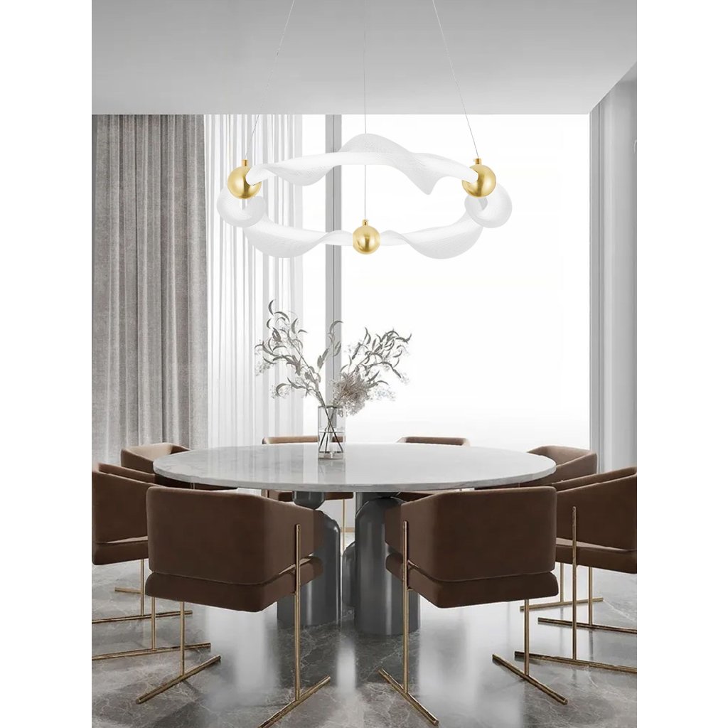 - Konštrukcia je zavesená na tenkých nastaviteľných kábloch, čo umožňuje nastaviť výšku svietidla podľa individuálnych potrieb interiéru. To umožňuje inštaláciu nad kuchynský ostrovček aj vo vysokej obývacej izbe. Použité materiály zaručujú trvanlivosť a ľahké čistenie.