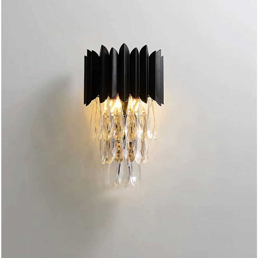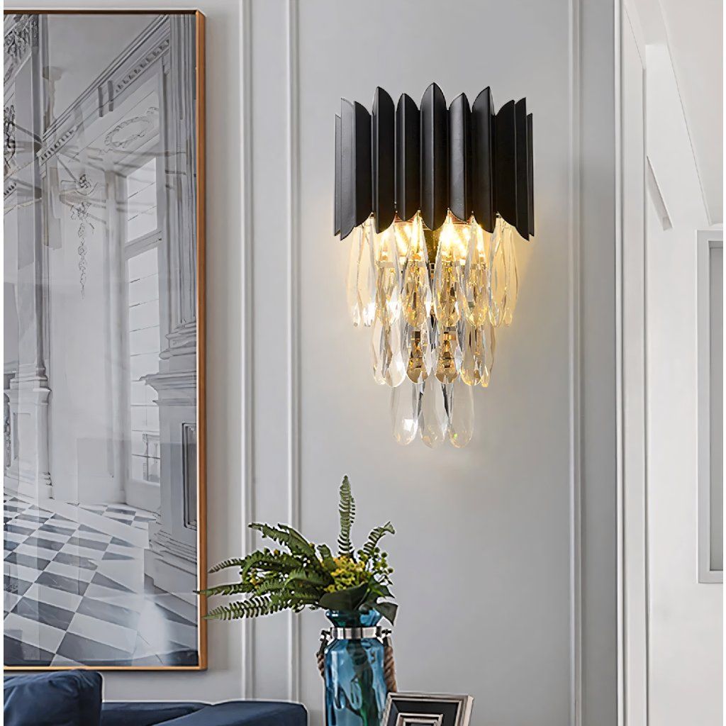 Štýlová nástenná lampa je jedinečnou voľbou pre interiéry, kde je dôležitá elegancia a efektívny detail. Konštrukcia je vyrobená z kovu a jej predná časť v čiernej farbe vytvára silný, moderný kontrast s dekoratívnymi sklenenými kryštálmi, ktoré jemne odrážajú a rozptyľujú svetlo. Celok dopĺňa obdĺžniková maska v zlatom lesklom povrchu, ktorá dodáva priestoru luxusný charakter. Zavesené krištáľové prvky dodávajú nástennej lampe ľahkosť a dekoratívnu hĺbku, čím vytvárajú efekt jemnej hry svetla na stene. Nástenná lampa je upravená na žiarovku s závitom E14, čo vám umožňuje voľne si vybrať farbu a výkon svetla podľa potrieb usporiadania. Model je ideálny ako dodatočné osvetlenie v obývačke, spálni, chodbe, pri zrkadle alebo v elegantnej relaxačnej zóne. Jeho tvar dokonale zapadá do glamour, moderných, moderných klasických aranžmánov a interiérov inšpirovaných luxusným dizajnom. Je to nástenná lampa, ktorá má nielen praktickú, ale aj dekoratívnu funkciu a stáva sa charakteristickým akcentom steny.