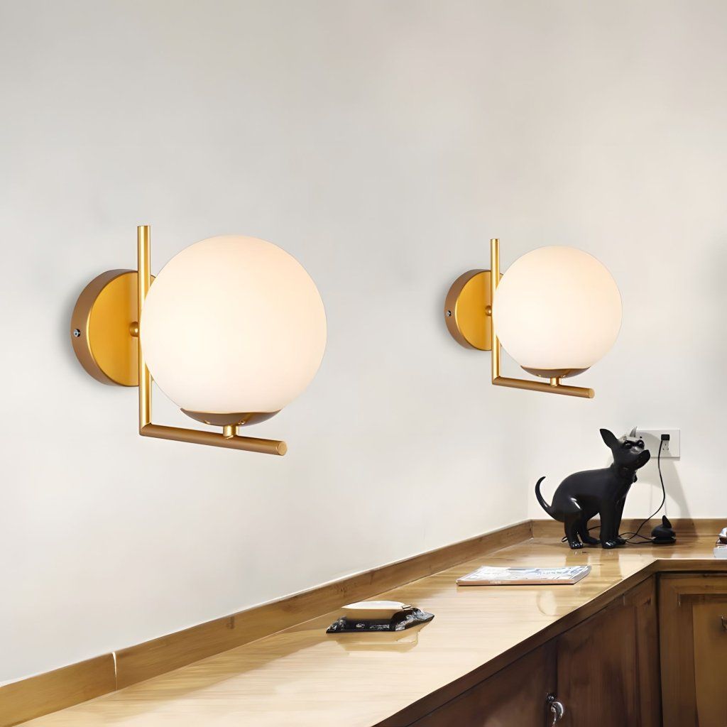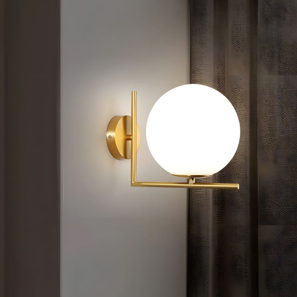 Zlatá nástenná lampa je elegantná ponuka spájajúca moderný dizajn s nadčasovou klasikou. Mliečne biele guľovité tienidlo jemne rozptyľuje svetlo a vnáša do interiéru príjemnú atmosférickú atmosféru. Jemný tvar a ušľachtilý zlatý povrch dodávajú lampe ľahkosť a sofistikovanosť, vďaka čomu je ideálnym doplnkom do spálne, obývacej izby, chodby alebo pracovne.