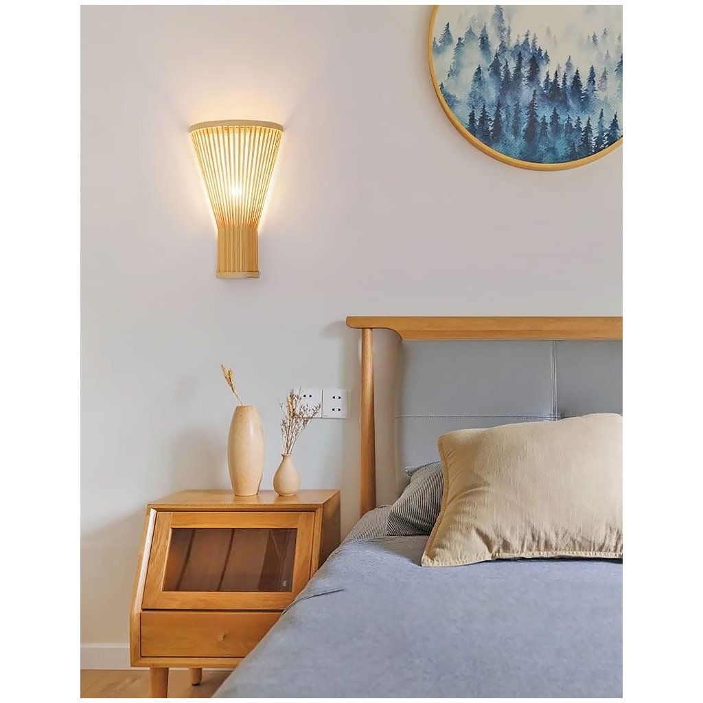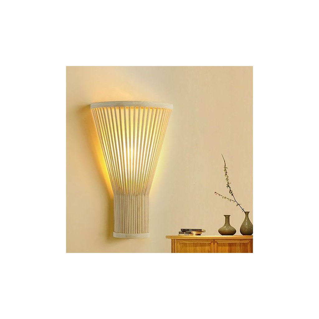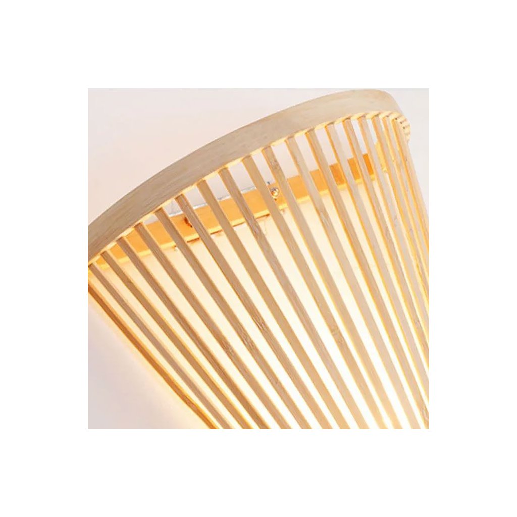 Lampa je vyrobená z bambusových lamiel. Jedinečná kombinácia prírodných materiálov a subtílneho dizajnu priťahuje pozornosť a vytvára útulnú atmosféru. Vďaka jednoduchému štýlu sa nástenná lampa hodí do každej miestnosti - či už je to spálňa, obývacia izba alebo detská izba. Bambusové tienidlo prepúšťa mäkké, mäkké svetlo, ktoré vytvára príjemnú atmosféru v miestnosti.