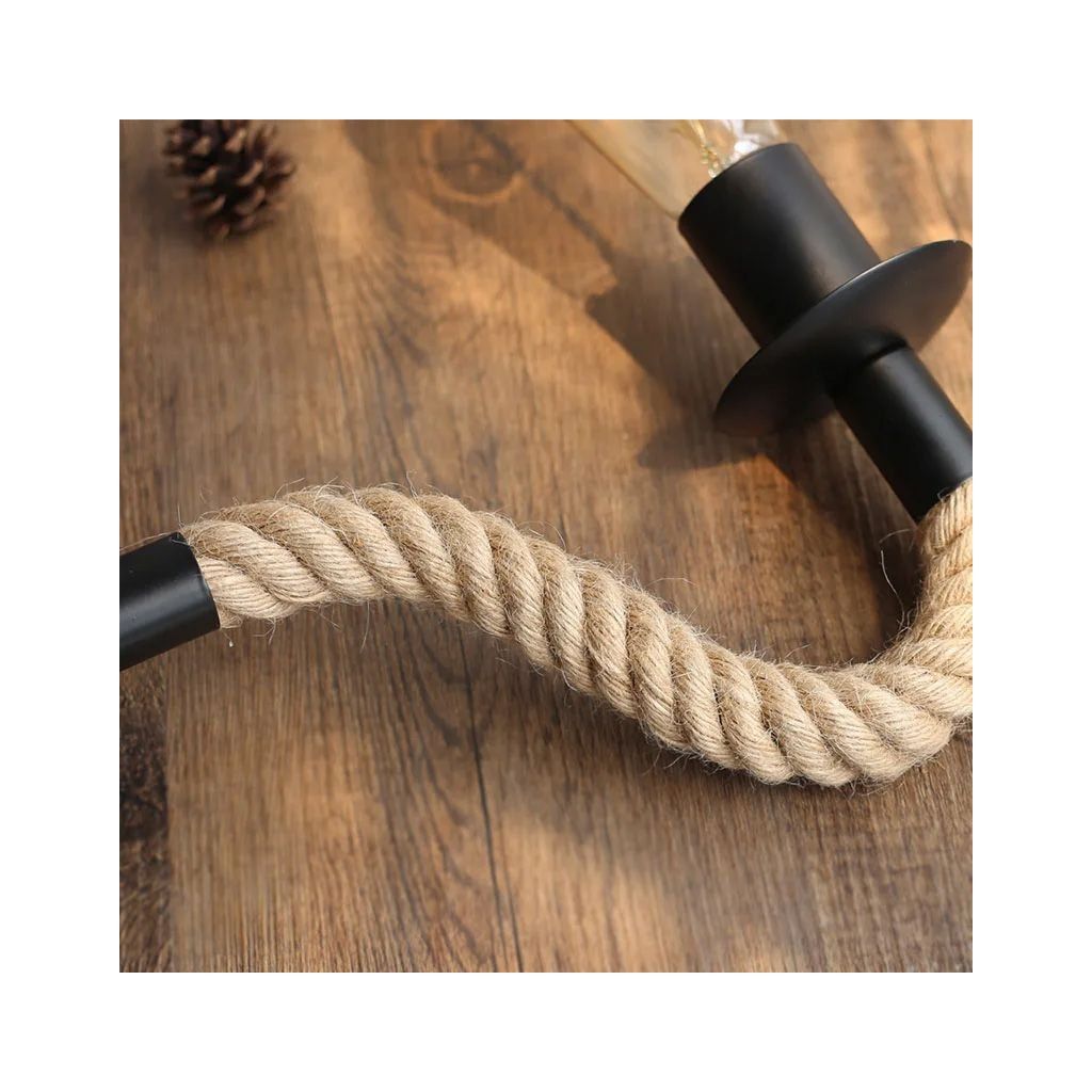 Lampa v priemyselnom štýle vyrobená z jutovej struny a kovu. Jedinečná kombinácia prírodných materiálov a subtílneho dizajnu priťahuje pozornosť a vytvára útulnú atmosféru. Vďaka jednoduchému štýlu sa nástenná lampa hodí do každej miestnosti - či už je to spálňa, obývacia izba alebo detská izba.