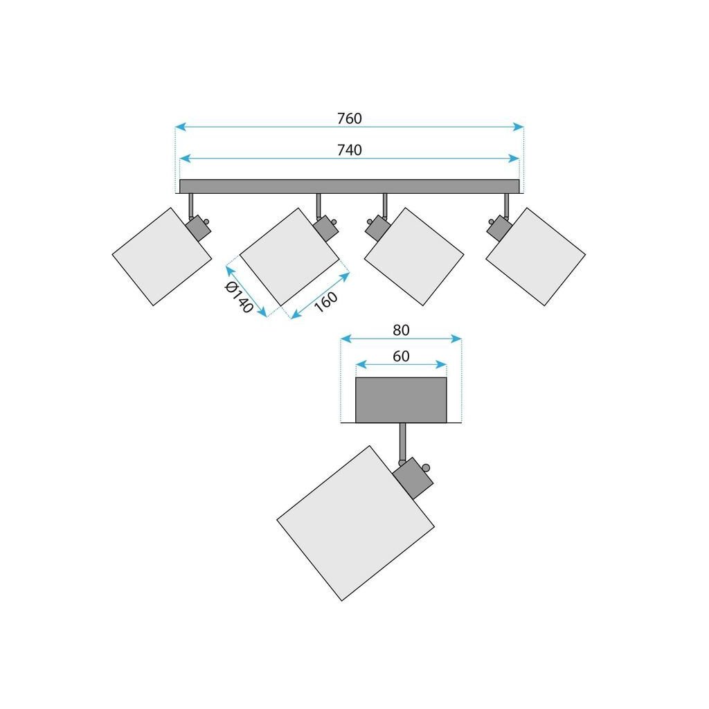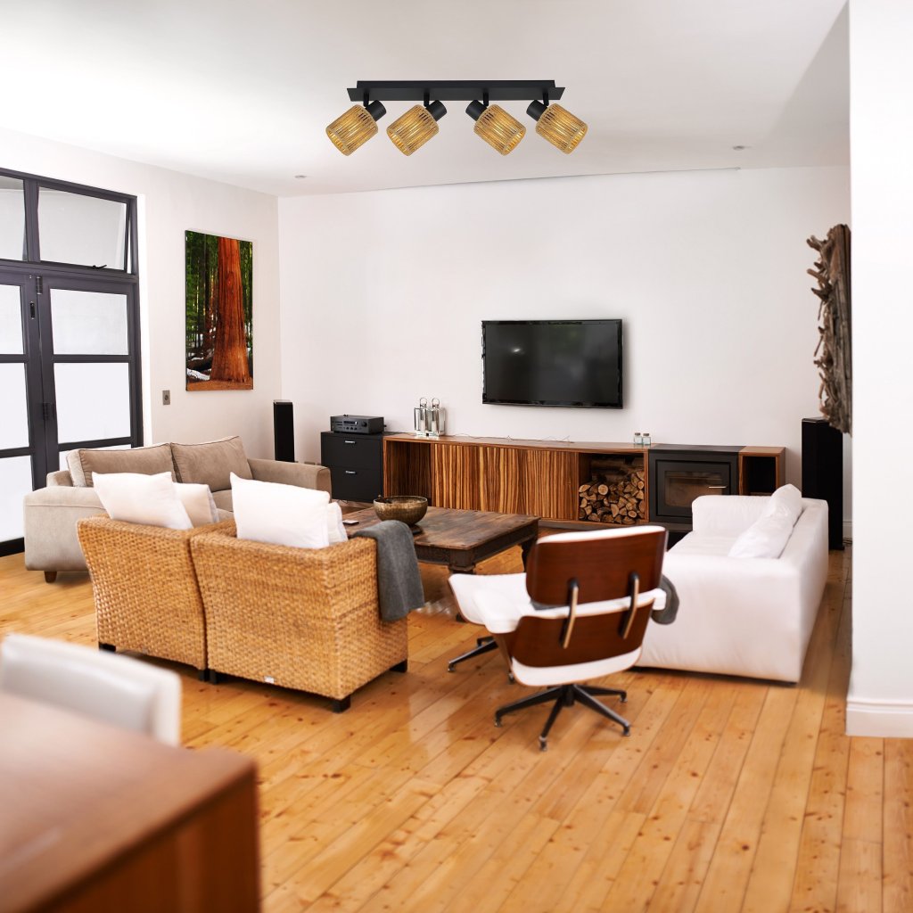 Toolight, stropné svietidlo 4xE27 APP1825-4W, čierna-hnedá, OSW-00624
