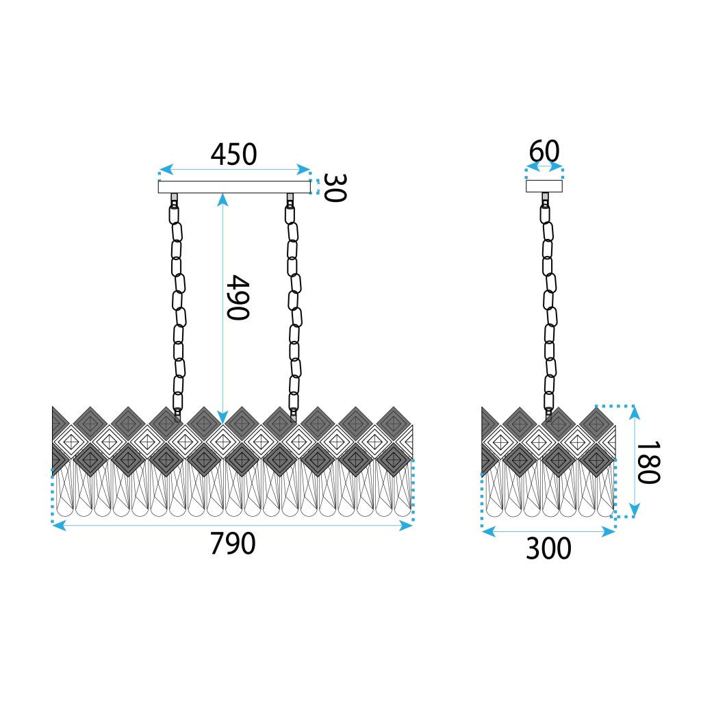 Svietidlo je vybavené 8 závitmi E14, čo umožňuje intenzívne a efektívne osvetlenie. Krištáľové prvky účinne rozptyľujú svetlo a vytvárajú jedinečnú žiaru. Zlatý rám a dekoratívne brúsené kryštály zdôrazňujú luxusný charakter tohto modelu.