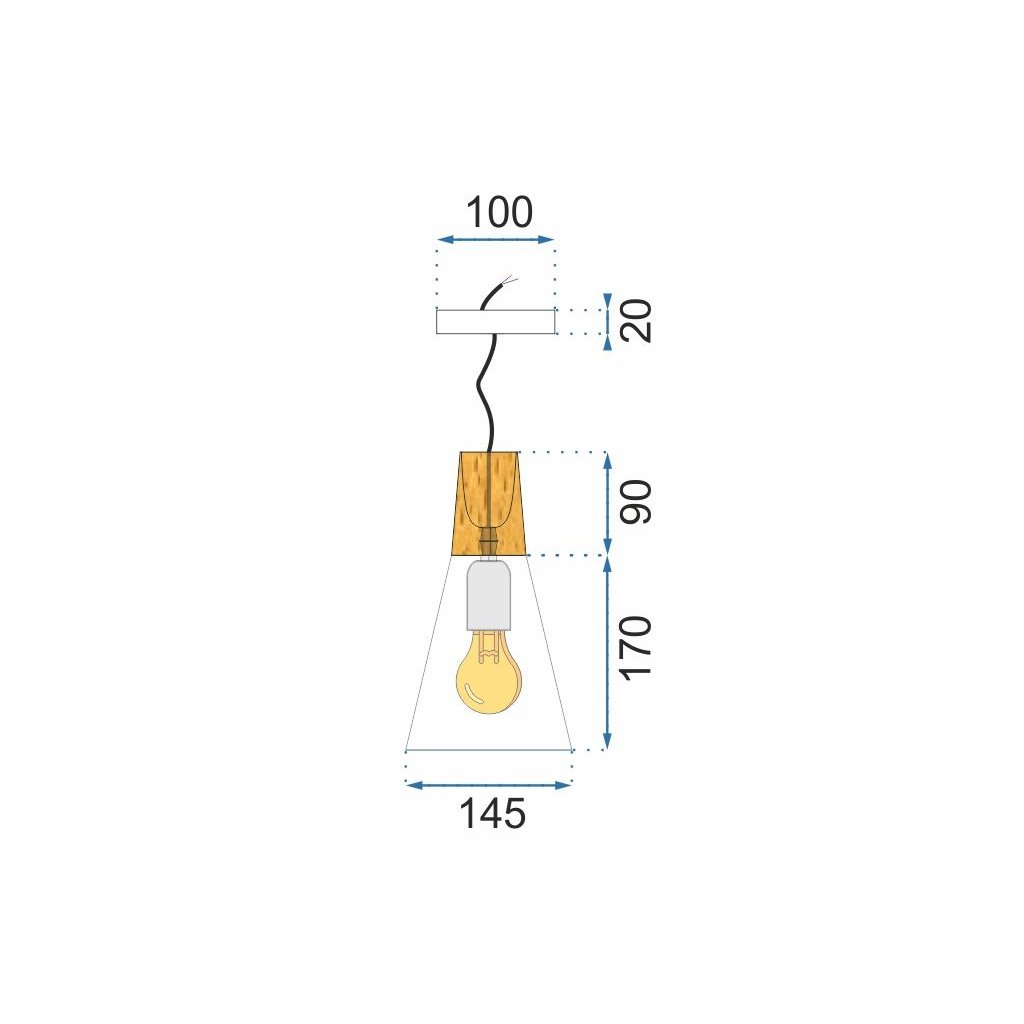 Svietidlo je vyrobené z dreva v kombinácii kovu s kovovým krytom na strope. Svietidlo má najobľúbenejší závit určený pre žiarovku E27. Dĺžku kábla je možné prispôsobiť miestnosti alebo usporiadaniu.