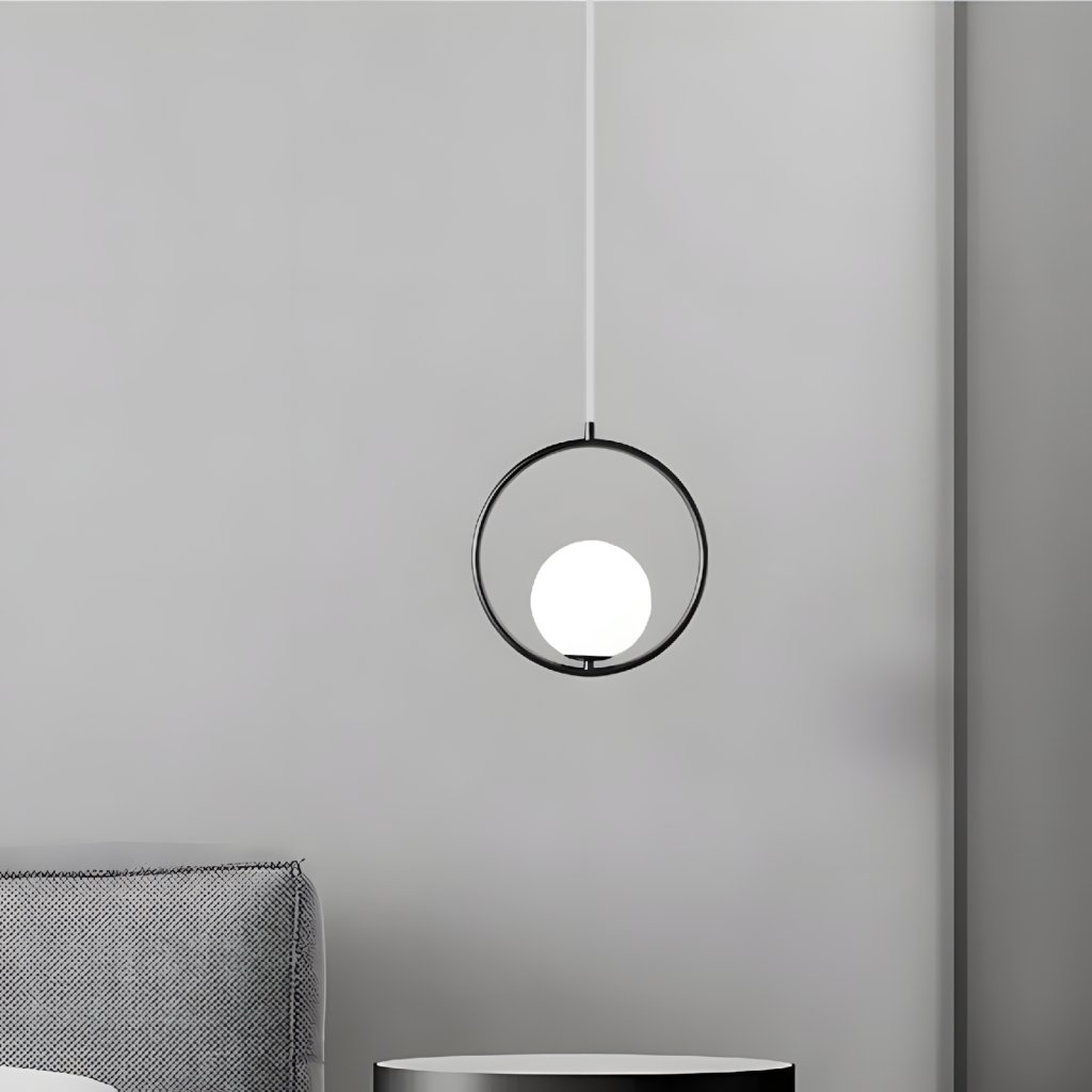 Toolight, stropné závesné svietidlo, biela sklenená guľa, 1xE27, G110-1W, biela-čierna, OSW-09735
