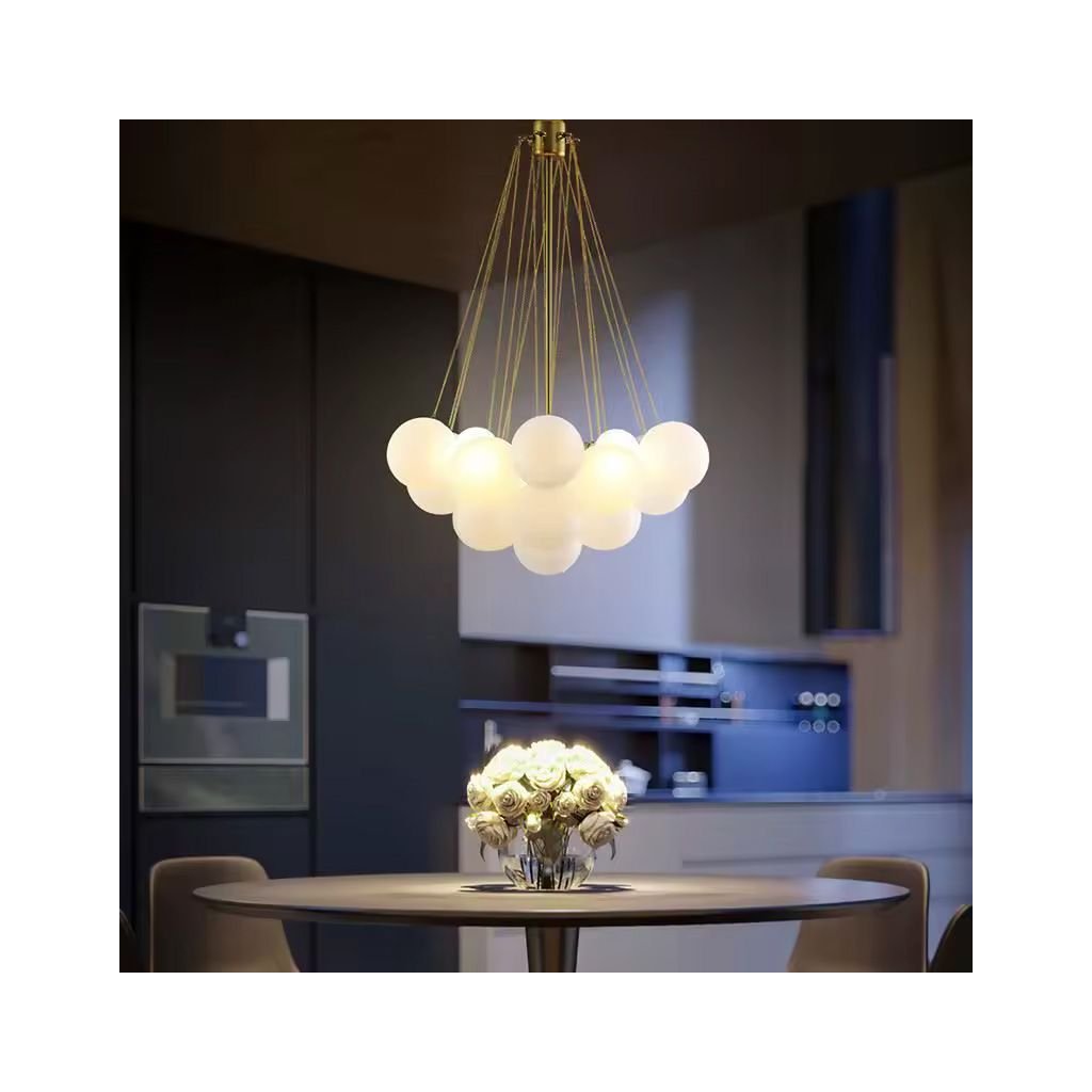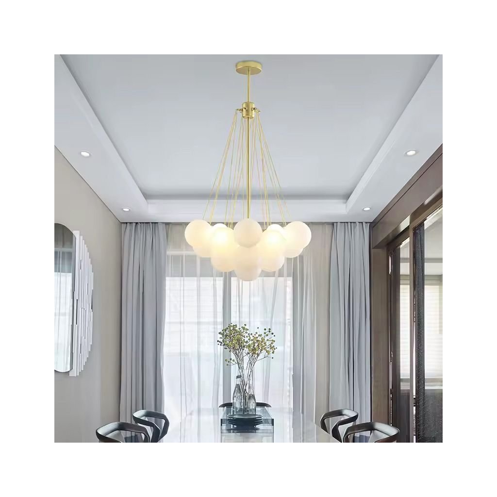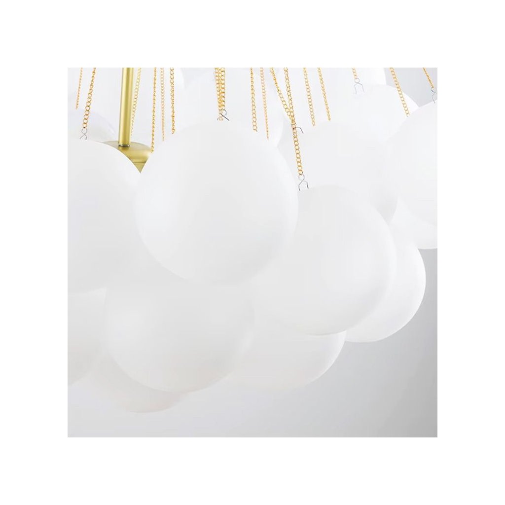 - Dizajn, ktorý upúta pozornosť: Zlaté retiazky a 12 mliečnych tienidiel vytvárajú efekt pôvabu, ktorý je ideálny pre moderné a klasické aranžmány.