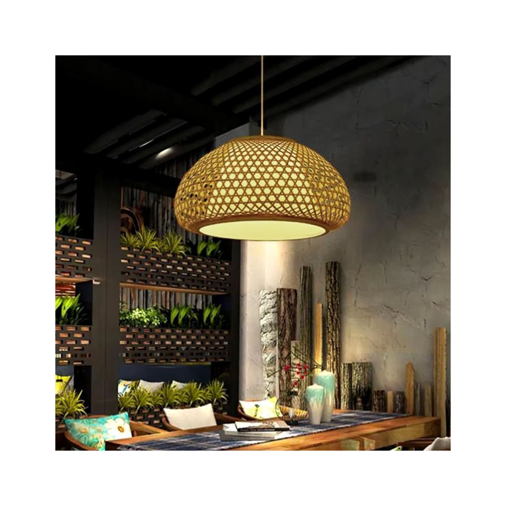 ☀️ Bambusová závesná lampa v boho štýle je elegantným doplnkom každého interiéru. Jeho prelamovaný, geometrický dizajn jemne rozptyľuje svetlo a vytvára príjemnú atmosféru.