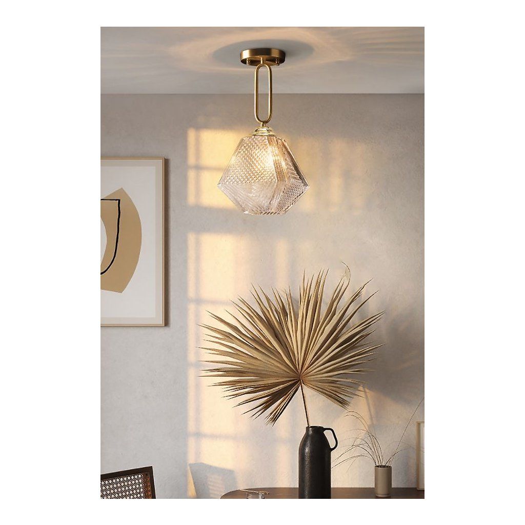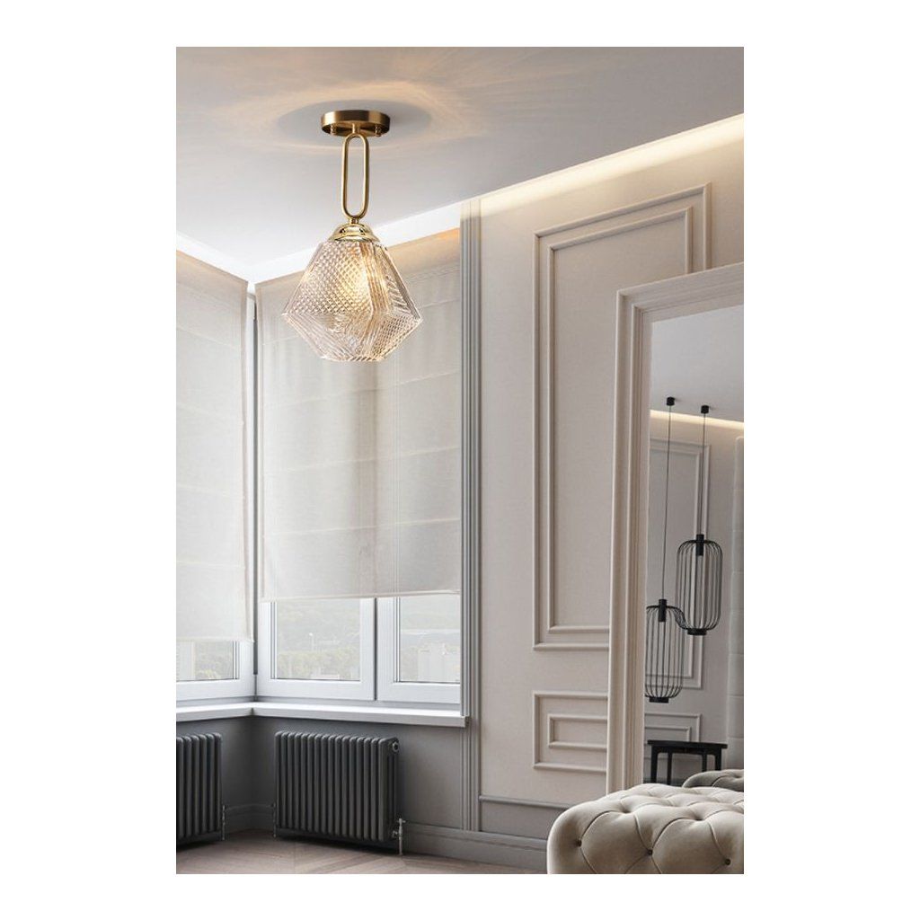 Jedinečný vzhľad nevylučuje žiadne usporiadanie - jednoduchý štýl robí lampu vhodnou do akéhokoľvek typu miestnosti, kuchyne, obývacej izby a detskej izby. Pôvodný vzhľad je daný skleneným tienidlom a zaujímavým tvarom lampy.