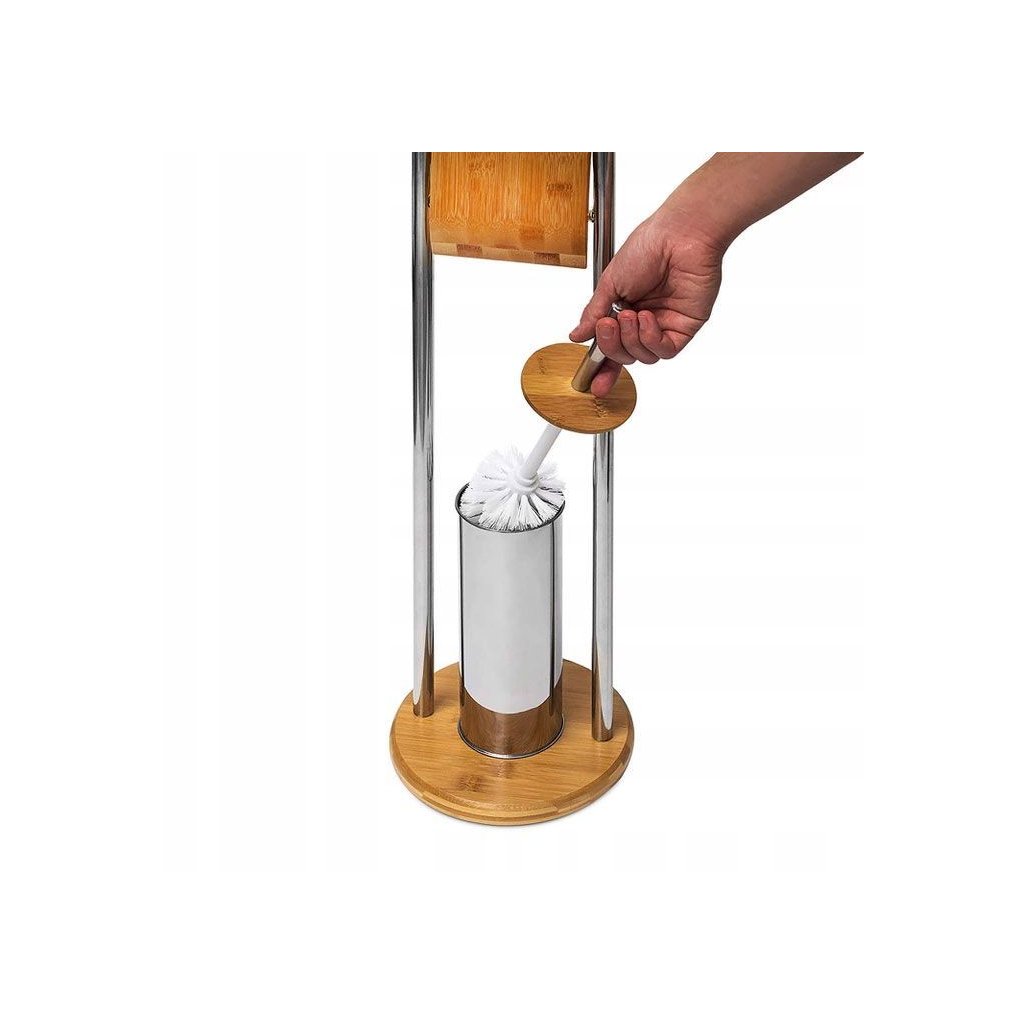 Tutumi, bambusový kúpeľňový stojan na toaletný papier a kefu 390228, hnedá-chrómová, HOM-07500