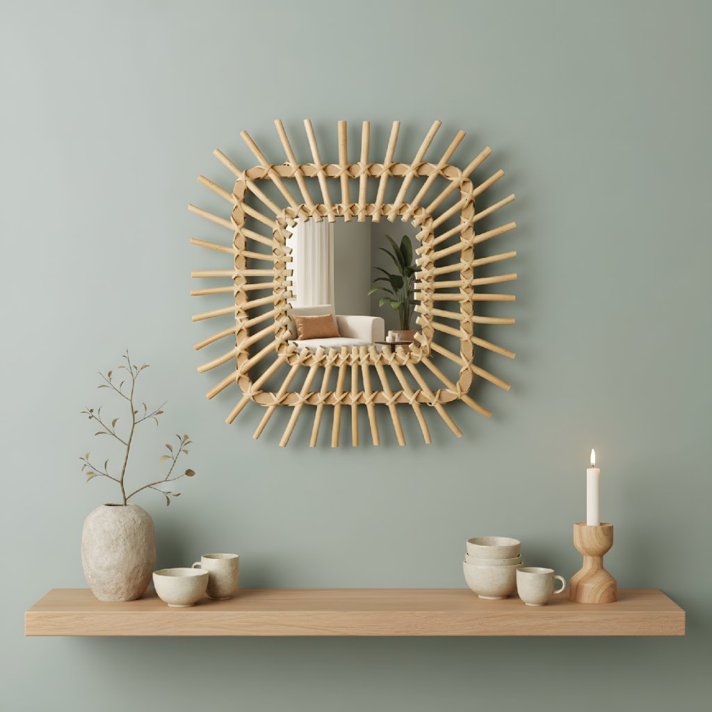 Ručne vyrobený zrkadlový rám ponúka nielen štýlový spôsob, ako ozdobiť steny a priniesť do vášho interiéru jedinečnosť, ale tiež ozdobiť miestnosť krásnou kombináciou tlmených farieb a tradičného remeselného spracovania.
