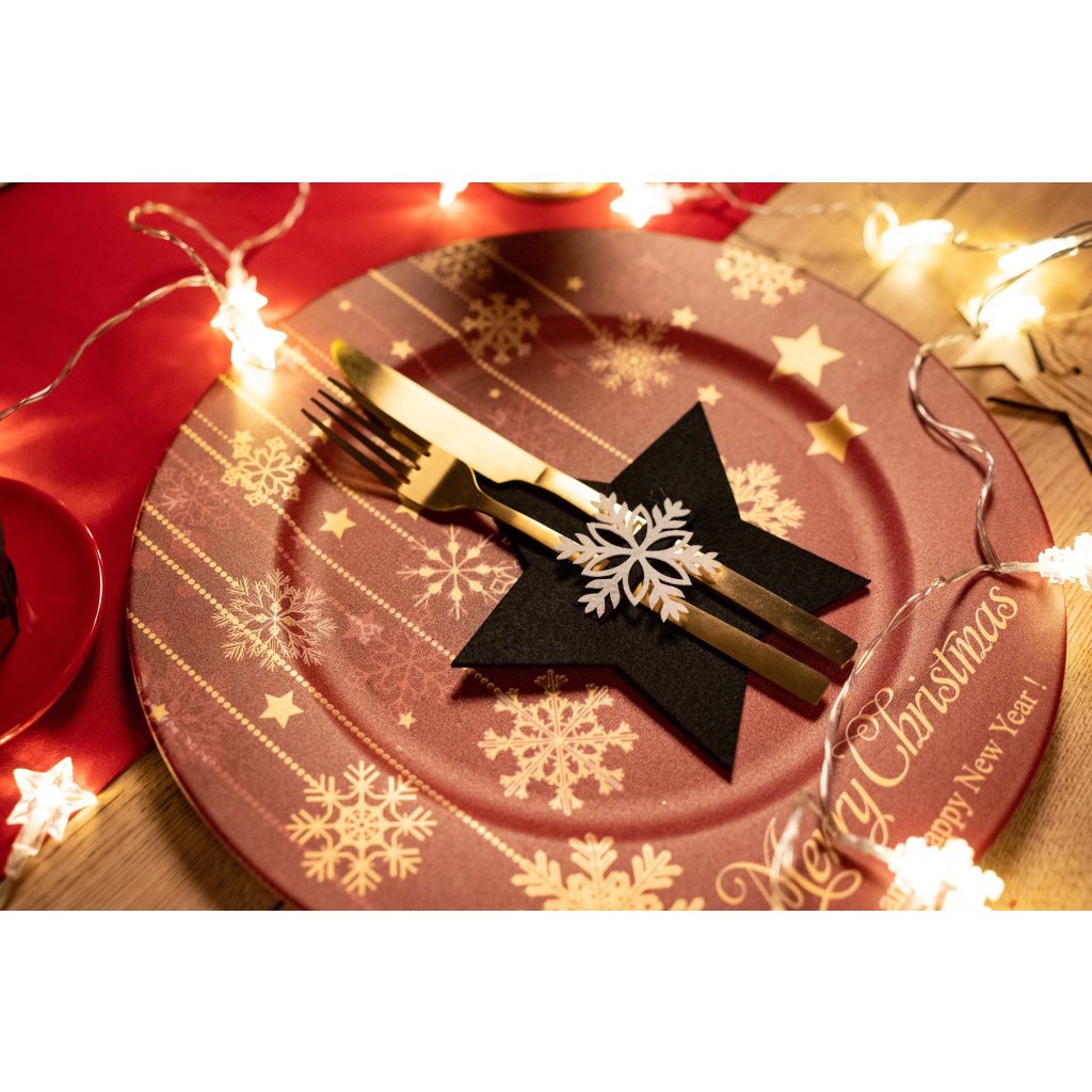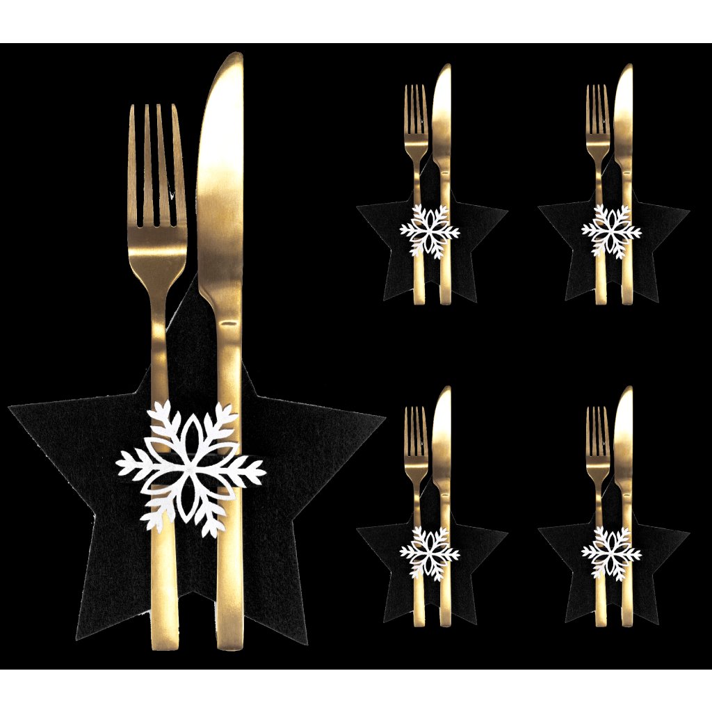 Krásne čierne obaly na príbory s motívom hviezd. Budú jedinečným zakončením štedrovečerného stola.Ozdobné obaly boli starostlivo navrhnuté a vyrobené tak, aby lahodili oku v najkrajšom období roka.