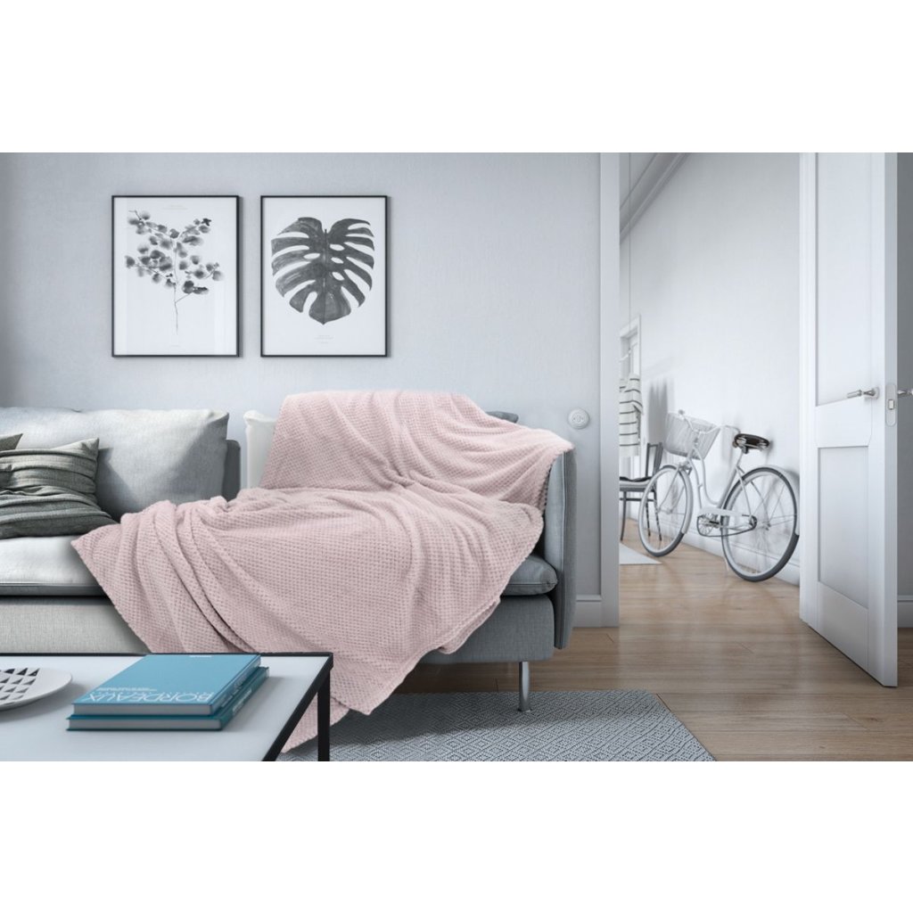 Celoročná tkaná deka je vyrobená z kvalitného polyesteru. Jemný povrch poskytuje charakteristickú jemnú mäkkosť a neuveriteľný komfort používania. Materiál a technológia, v ktorej bola deka vyrobená, vám umožňuje udržiavať správnu telesnú teplotu a zároveň má primerané priedušné vlastnosti a odvádza vlhkosť vďaka použitej vnútornej sieťovine. Deka je ideálna ako dekorácia a pri každodennom používaní.