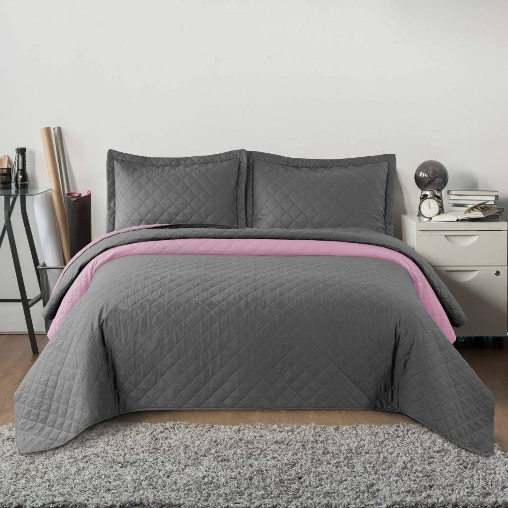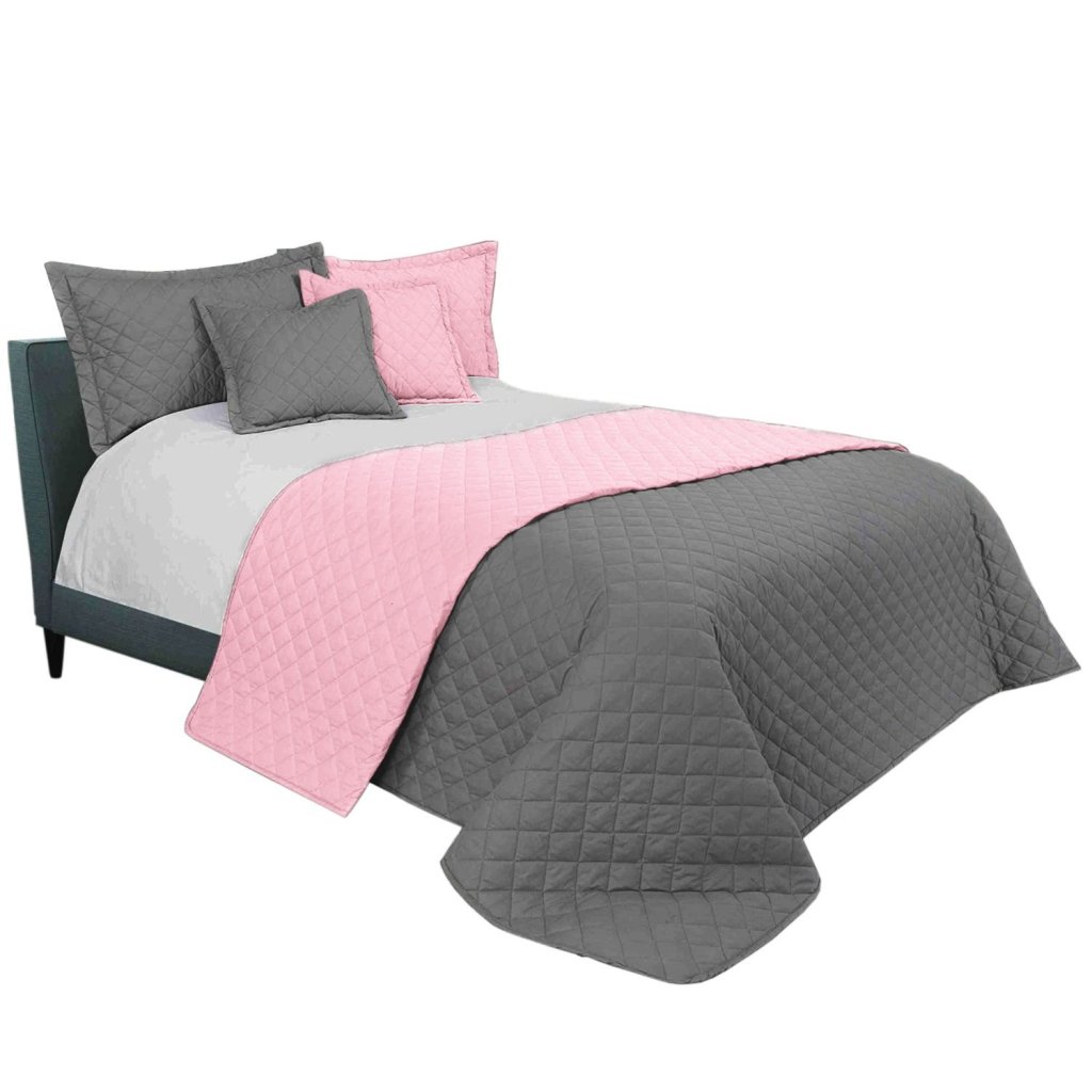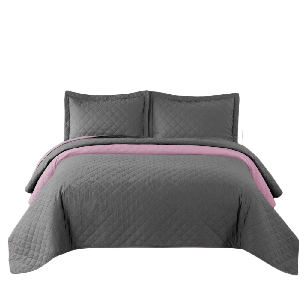Tutumi Inez, obojstranný prešívaný prehoz 220x240 cm, tmavošedá-ružová, NAZ-08510