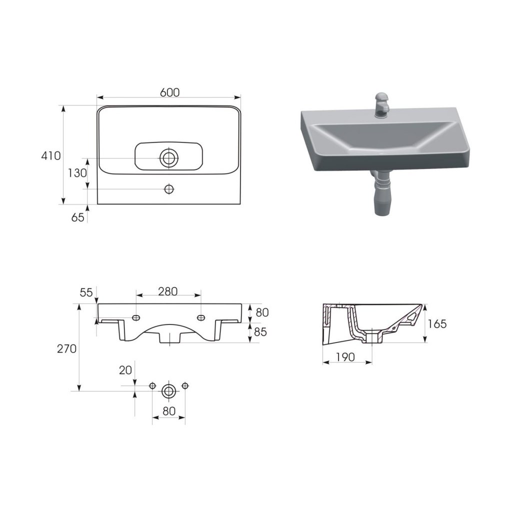 Cersanit Mille Slim, skrinkové umývadlo 60x41 cm, biela, K675-002