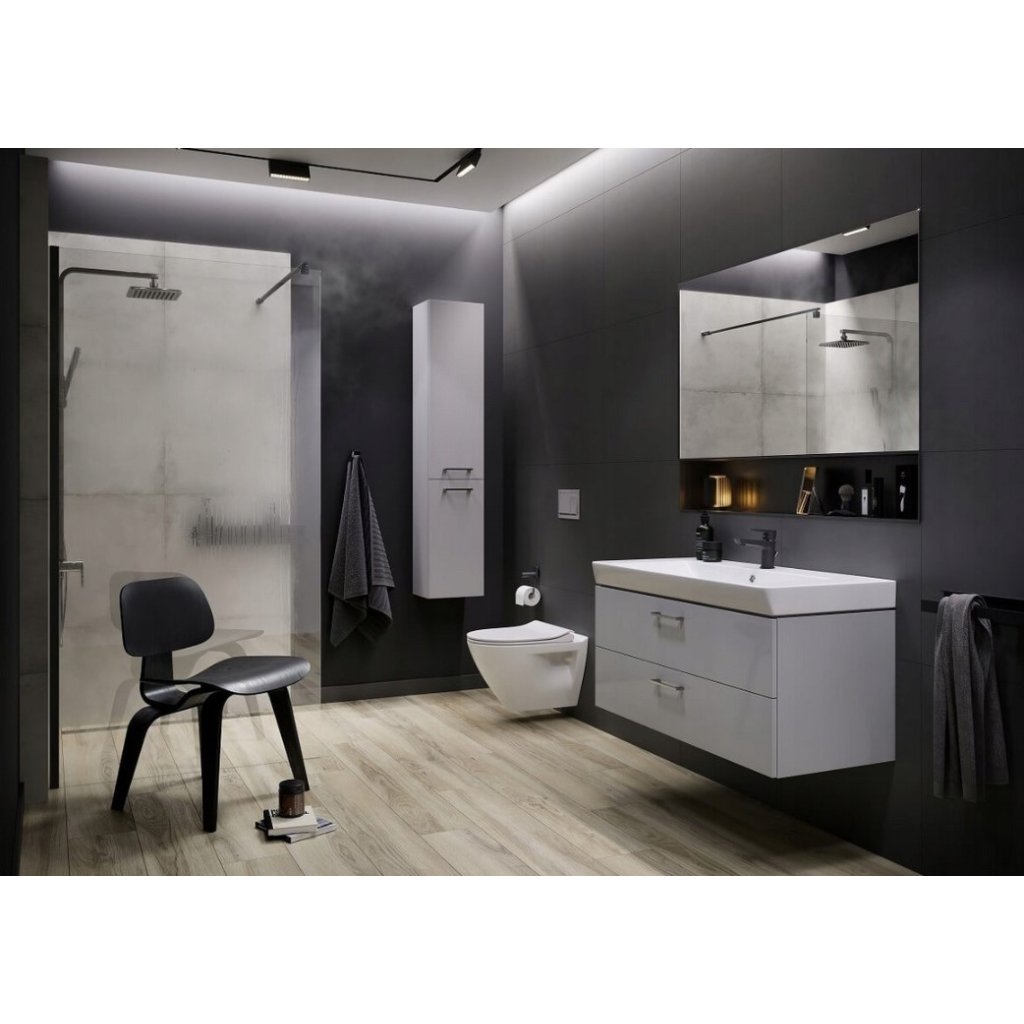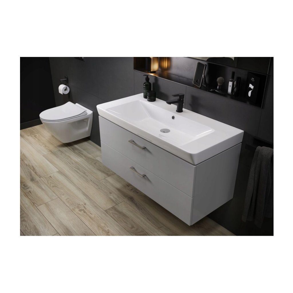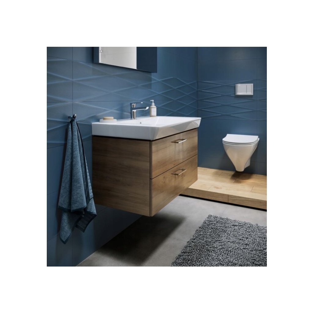 Umývadlo nábytku MILLE vďaka skosenej prednej časti zaberá menej miesta, čo umožňuje efektívnejšie využitie priestoru kúpeľne. Je vhodné ho kombinovať so skrinkami zo série: LARA SLIM, MODUO SLIM.