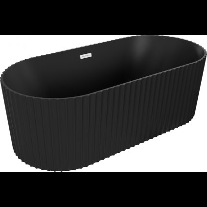 Mexen Paola, voľne stojaca vaňa, drážkovaná, 150 x 75 cm, čierna matná, biely prepad, 52721507571-20