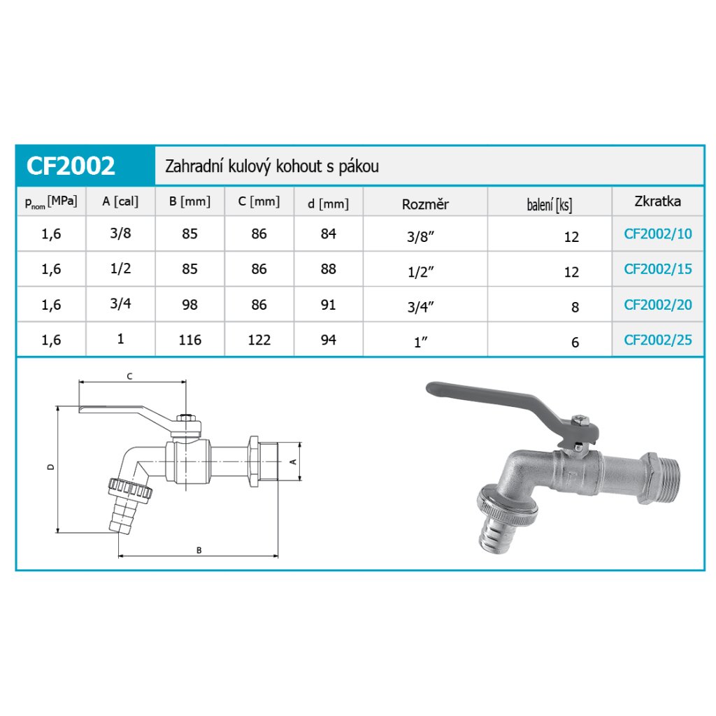 Zahradní kulový kohout s pákou. PN 16.Dodatočné parametre